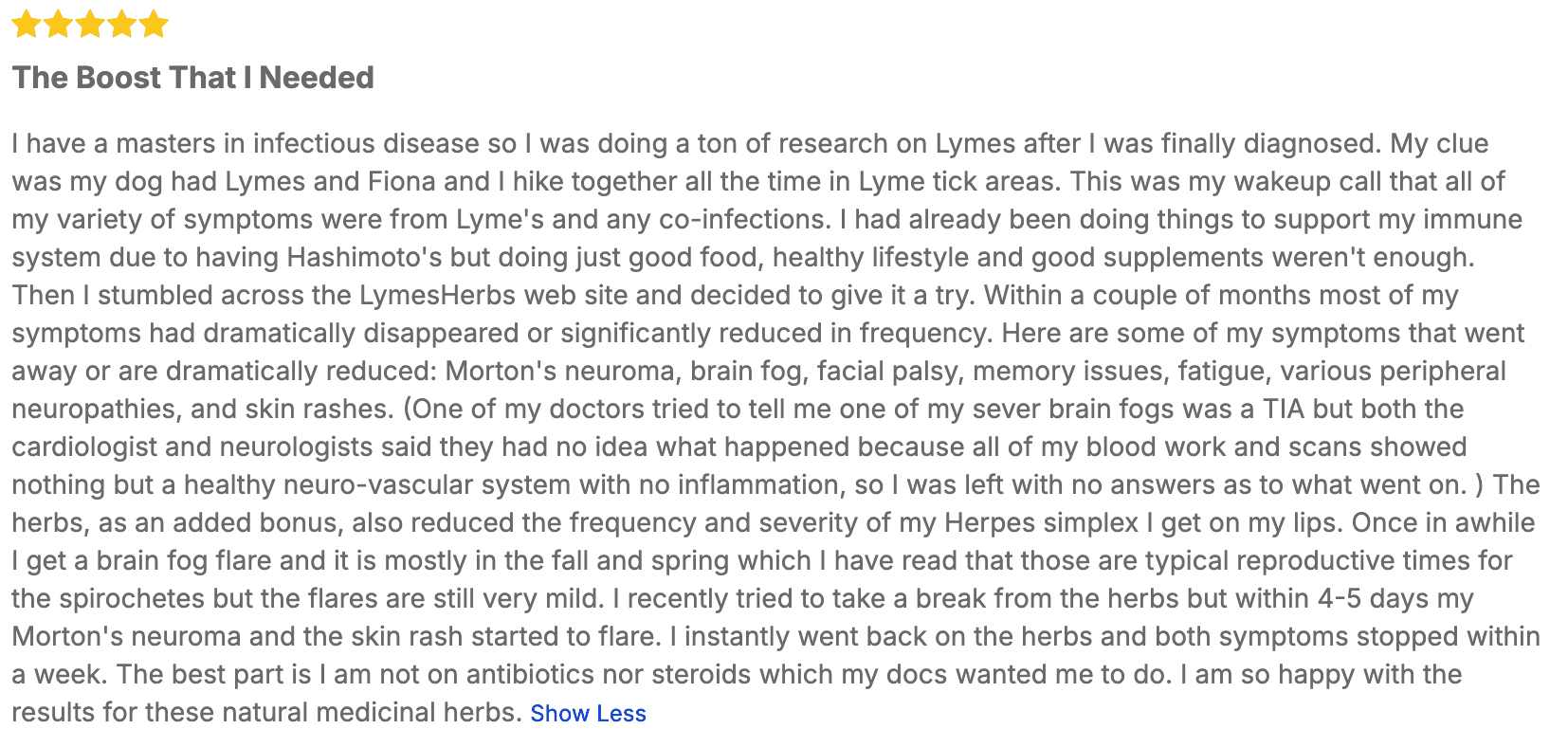 The herbs I used in my own recovery — and the herbs thousands of Lyme warriors use — are the exact formulas you’ll receive.